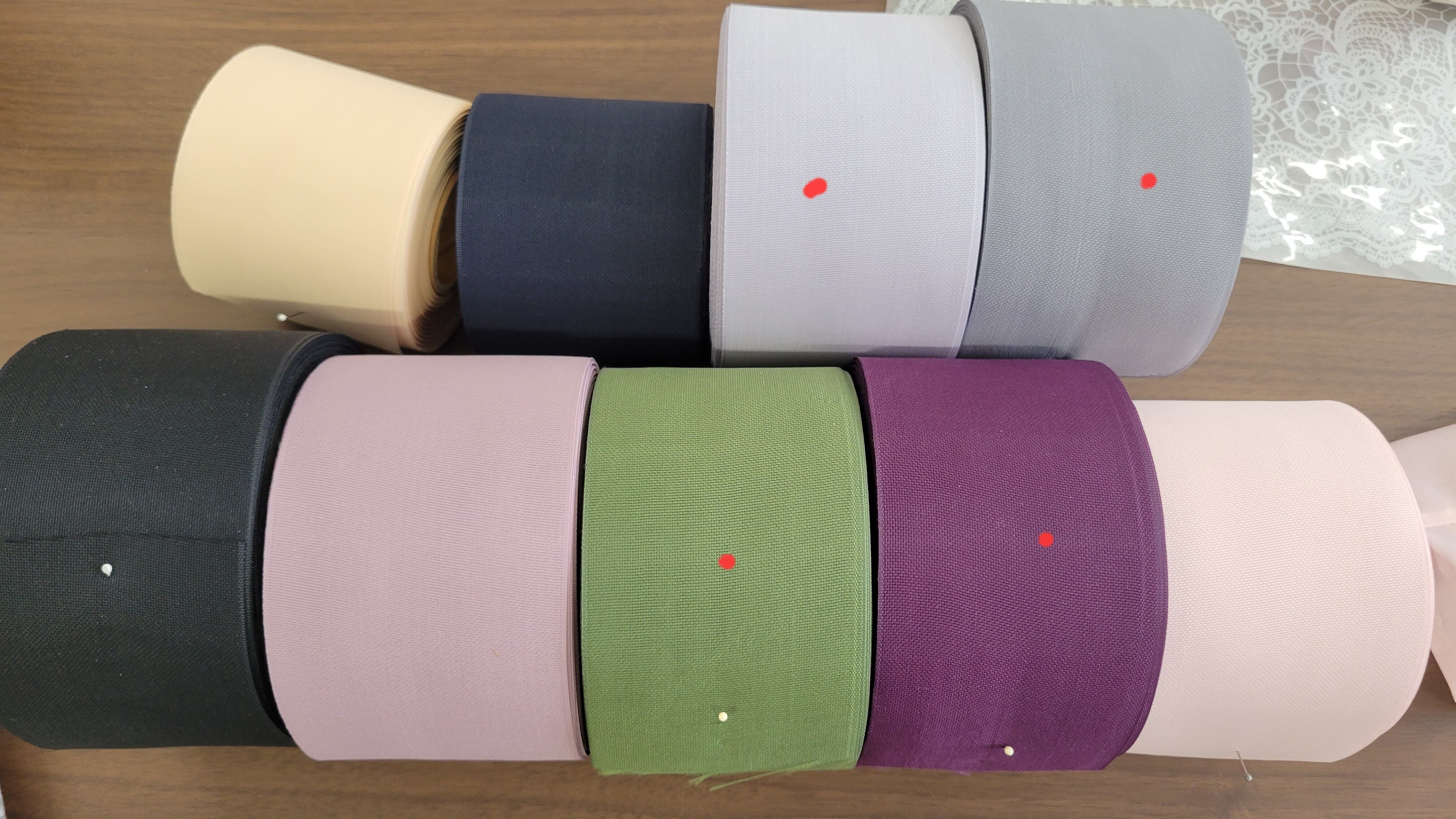 70㎜幅の軽いリボンで貼りがほどよくありタックフリルに最適のドレープが出ます。